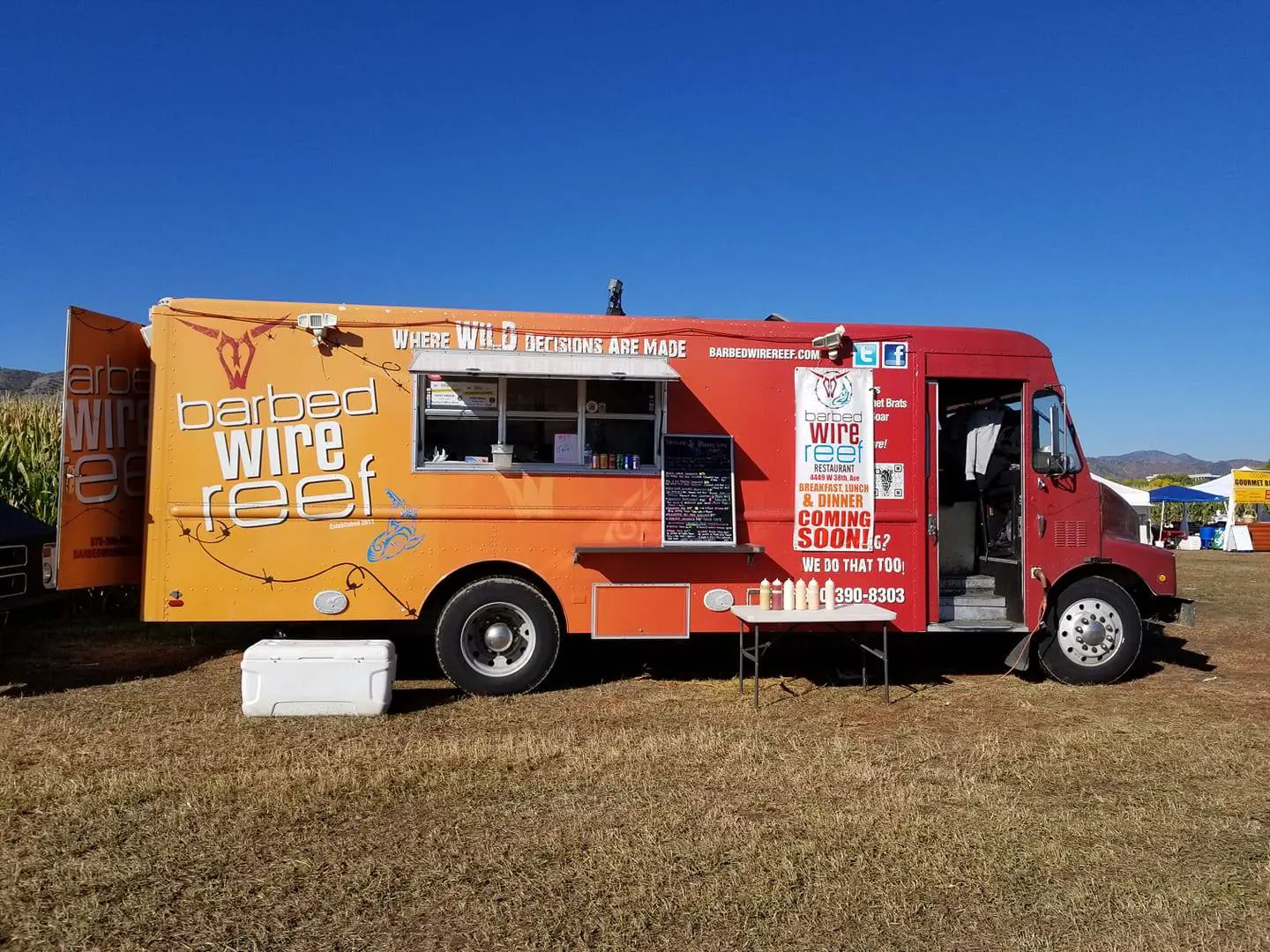 Barbed Wire Reef is a one-of-a-kind food truck based in Denver, CO, known for pushing the limits of street food with a menu built for the bold. Specializing in wild game and seafood, their offerings are infused with rich Latin flavors and a fearless approach to flavor. From elk, bison, and rattlesnake burgers to handcrafted sausages and crave-worthy sandwiches, Barbed Wire Reef food truck in Denver turns every order into an adventure. Standout items include The Deervastator – an elk patty stacked with chipotle BBQ sauce, smoked boar bacon, cheese, and a crispy onion ring – and The Classic, which lets guests choose their wild protein, from Angus beef to buffalo or elk. They also serve up a full lineup of street-style tacos, burritos, rice bowls, and quesadillas that bring a taste of the Southwest to every stop. With multiple food trucks and a reputation for creative, high-quality cuisine, Barbed Wire Reef food truck offers something for every kind of eater – whether you're after a daring wild game dish or a next-level fried chicken sandwich. It's not just a meal – it's a full-on flavor experience that keeps Denver foodies coming back for more.