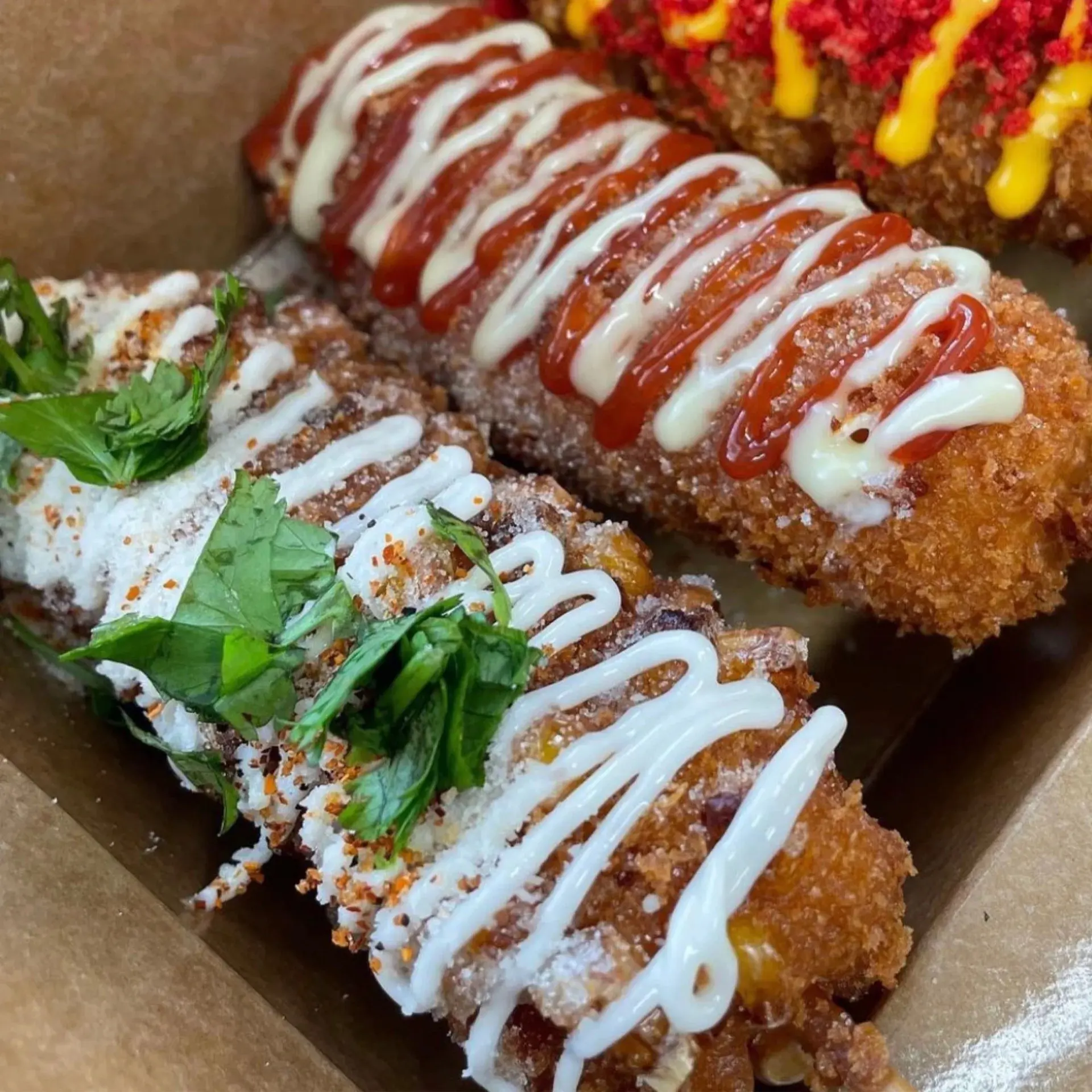 Mukja is a family-run operation led by Julia Rivera, who left behind a 12-year career in accounting to launch the truck with her daughter, Kayla Makowski, in 2019. What began as a side hustle quickly grew into a full-time passion project rooted in Julia’s Korean heritage and a desire to bring fun, approachable fusion food to Denver. Julia’s son James also joined the team during the pandemic, and her husband Victor helps out when he can, making Mukja a true family affair. With Julia at the helm, the truck has become a beloved staple in Denver’s food scene, known not only for its inventive eats but also its heart and hospitality